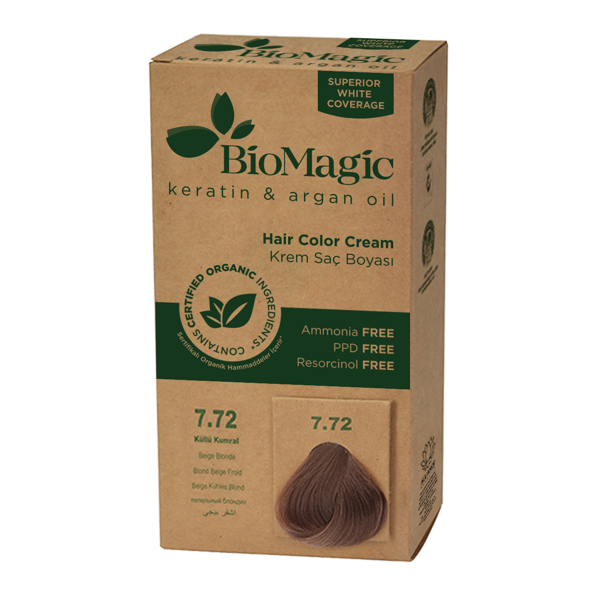 FARBA DO WŁOSÓW BEŻOWY BLOND (7.72) 250 g - BIOMAGIC